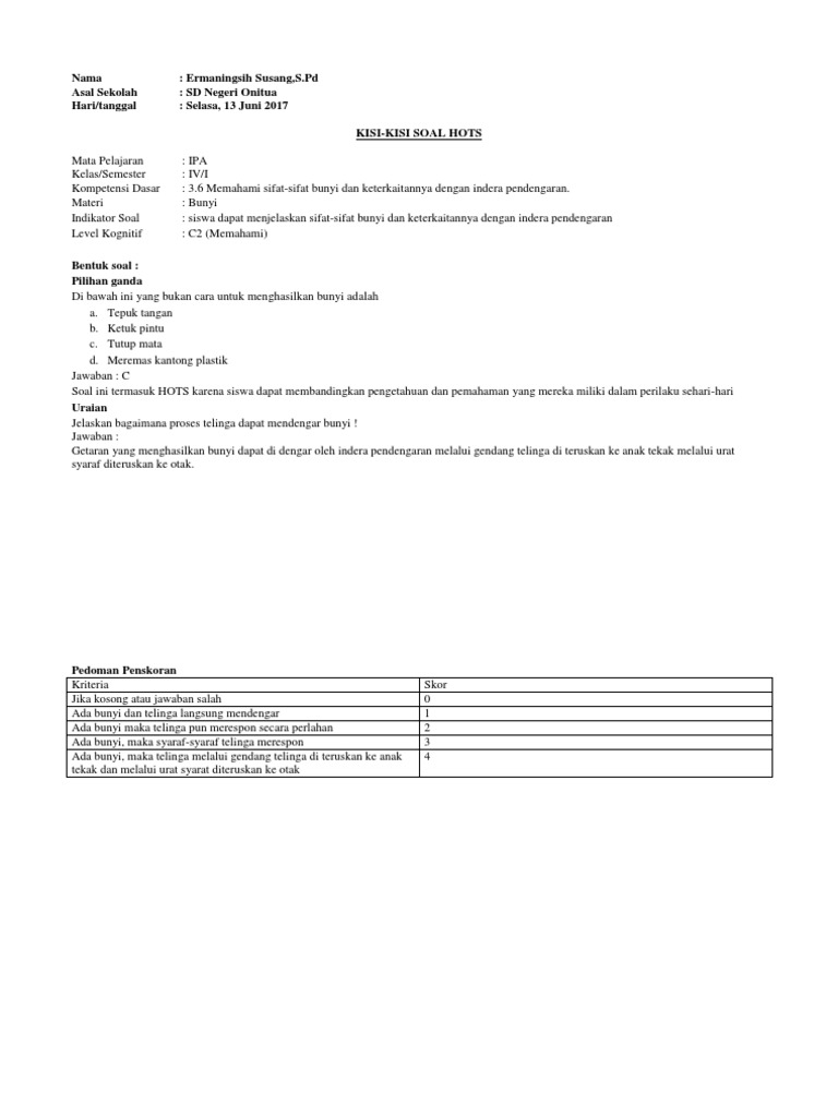Kisi Kisi Soal Hots Ipa Sd / Langkah Langkah Menyusun Soal Hots Untuk Sd Sekolahdasar Net - Contoh contoh soal hots kurikulum 2013 silahkan unduh pada link dibawah ini.. 20180902 latihan soal ipa tentang sistem pernapasan manusia dan hewan beserta kunci jawabannya telah kami berikan. Contoh contoh soal hots kurikulum 2013 silahkan unduh pada link dibawah ini. Dipastikan anda akan beresiko meninggal dunia. Download juga kumpulan soal soal uas k13 revisi 2018. Apr 29, 2021 · soal ips kelas 6 sd mi semester 1 dan 2 pg dan essay 2020 sumber dari.