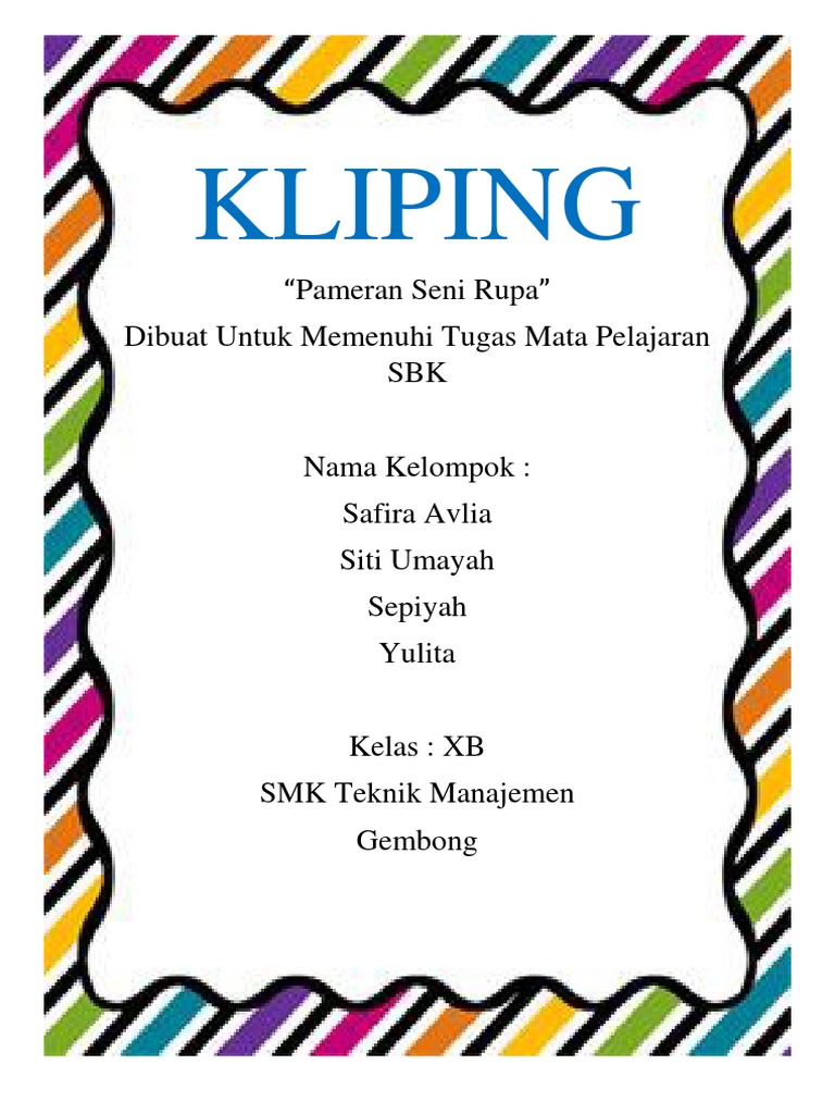 Halaman Detail Berita from kliping.jogjakota.go.id Diposting oleh aliansi masyarakat kartun di 23.45. Berikut beberapa penjelasan mengenai kliping, dari mulai pengertian, teknik pembuatan, struktur kliping, cara membuat, sampai ke contoh kreatif pembuatan kliping. Makalah pameran seni rupa untuk sma kela bab ipendahuluan i.1. Program tahunan pameran karya seni supa. Pernyataan yang benar dibawah ini adalah.a. Tugas kliping bencana alam, seni budaya, olahraga. Seruan untuk kalian para penikmat dan kreator seni desan. Contoh kliping pameran seni rupa pdf.