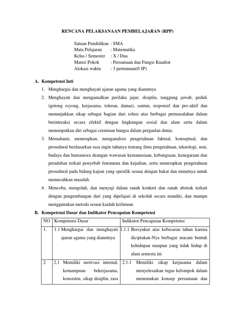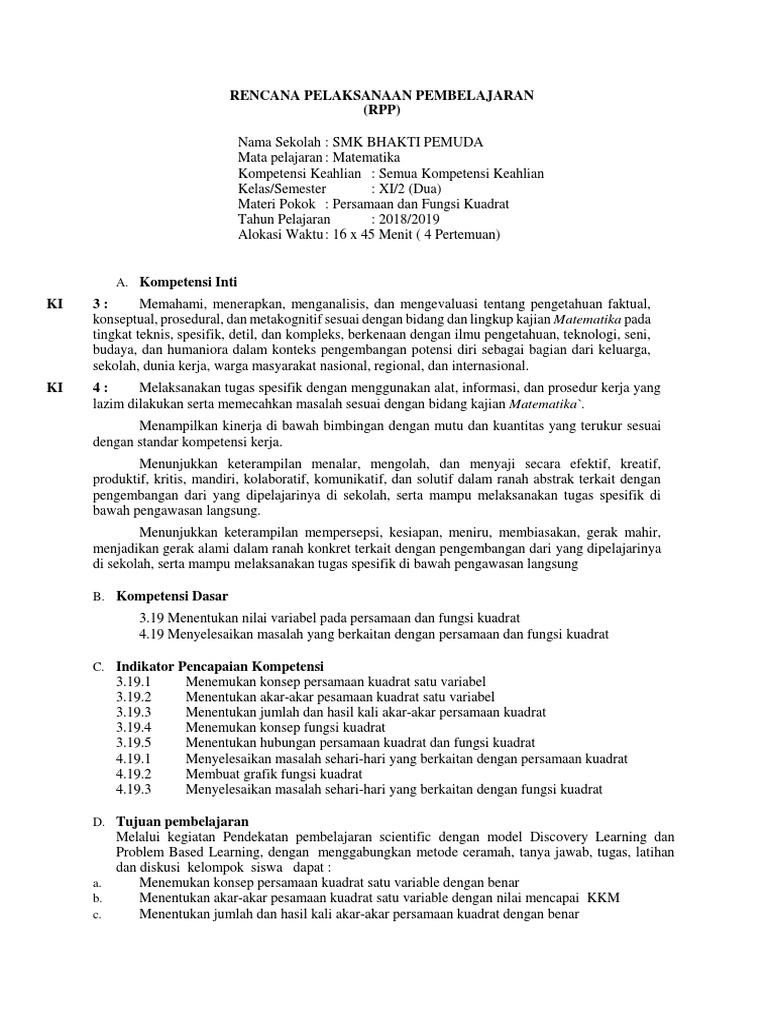 Rpp persamaan dan fungsi kuadrat kelas 9 kurikulum 2013 revisi 2018. We did not find results for: Check spelling or type a new query. Maybe you would like to learn more about one of these?